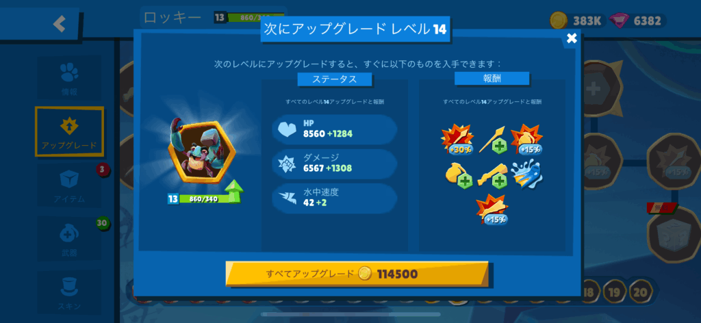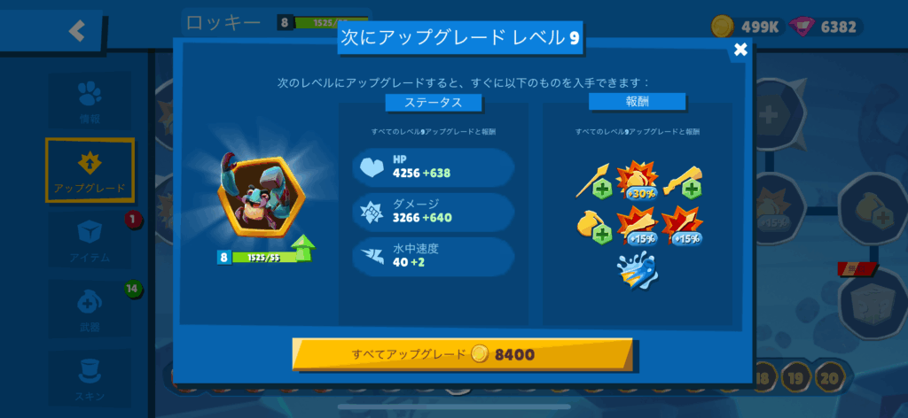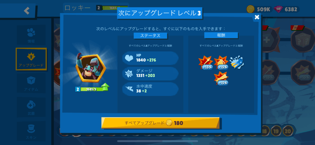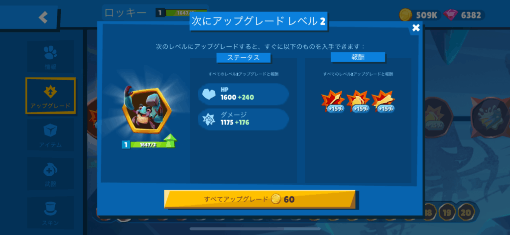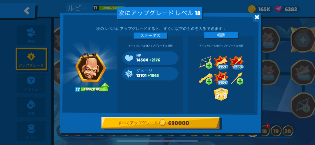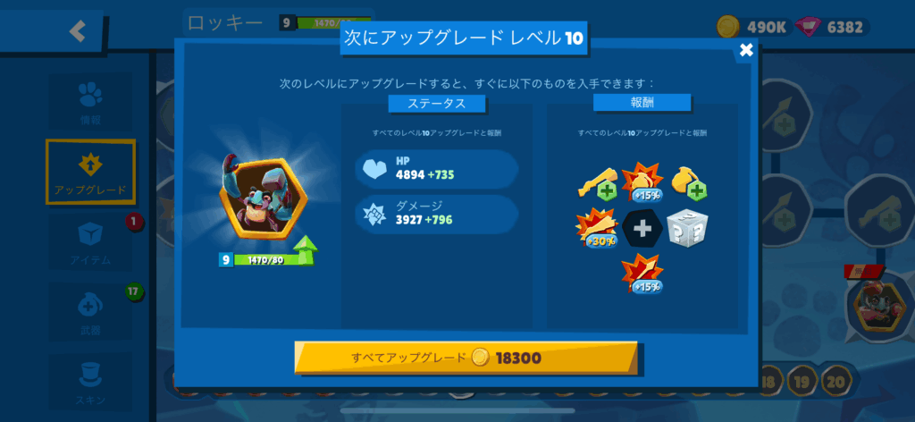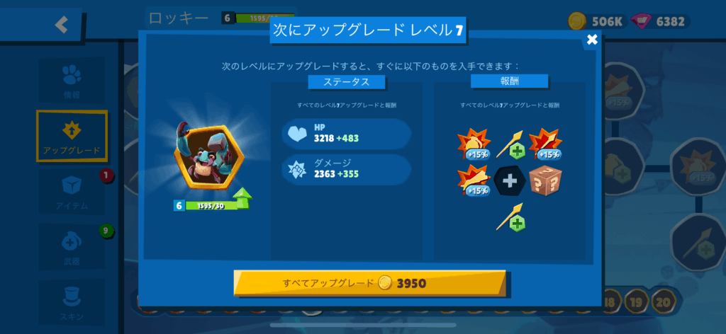 最近気づいたんだけど、この19から20にコインで開放する15%UP等はレベル20になったら反映されます。コイン使って解放した段階で反映されると思っていたらそうじゃなくて20になったらパワーアップしています。いつから?勝手に変更するなよ。この9千のトークンがきついんだから・・・