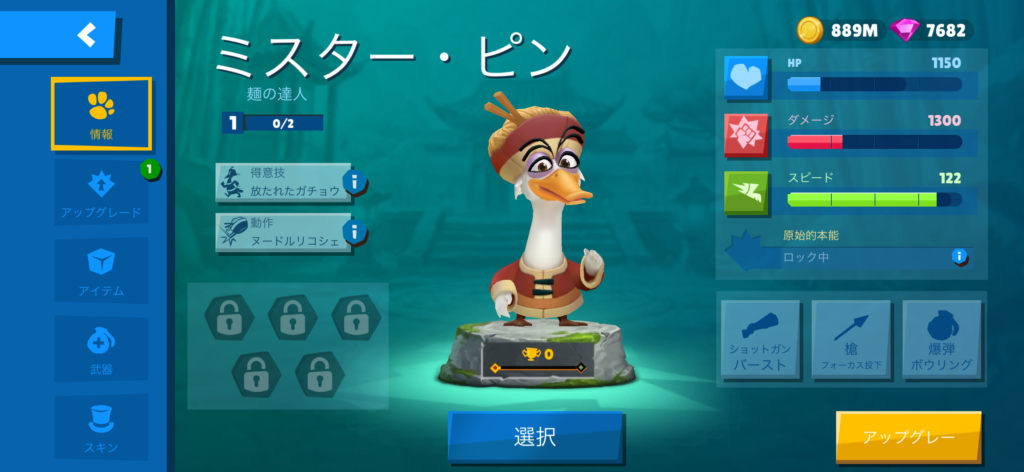今までフラミンゴしかできなかった水中で3種の攻撃+スキルも使用可能です。なおかつ攻撃すると水中移動速度がUPします。