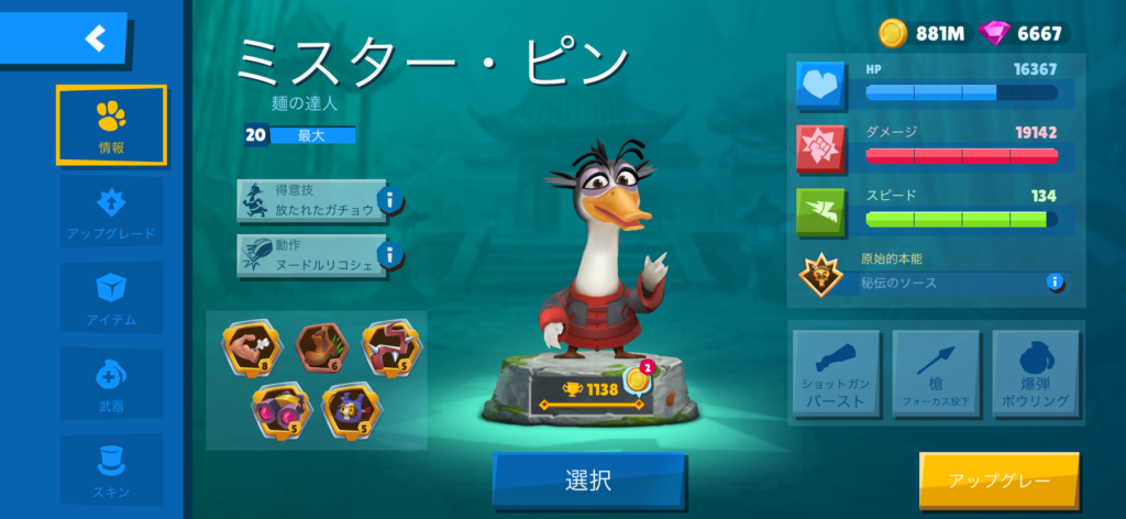 HPと攻撃力UPはふくらむ筋肉で対応。手数が多いのでターボロケットとの相性抜群。いやーこの編成でレベルMAXならメチャクチャ強いんじゃないかな??
